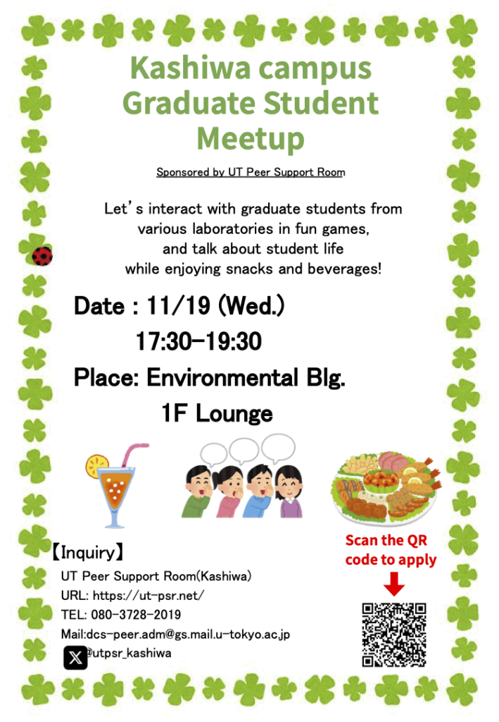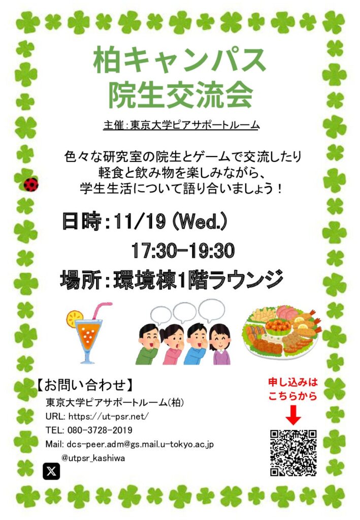 11/19(Wed.)“院生交流会/Graduate Student Meetup” & 11/5(Wed.),19(Wed.)“柏ラウンジ/Lounge” will be held!‼️