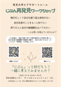 ピアサポートルームは、学生同士の支え合いを目指す東京大学公認の組織です。